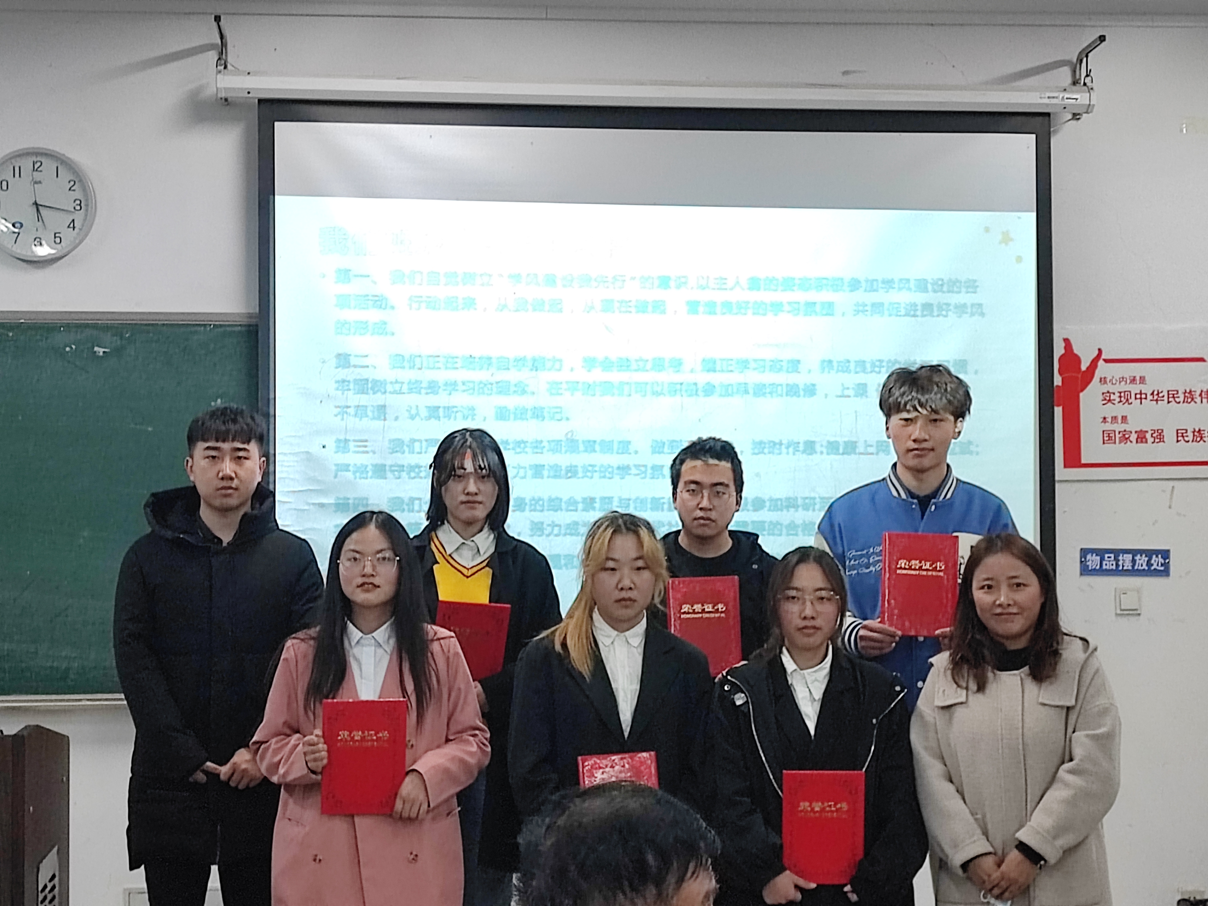 为进一步加强公司学风建设,促进良好班风和学风的形成,充分发挥先进典型的榜样示范作用,12月8日下午,云顶国际yd888在22108教室举办“践行恩来精神,塑造优良学风”学风建设月总结评比活动。云顶国际yd888关工委常务主任蒋鼎国,党委副书记金娅琳,学工办主任陈晓娟,辅导员王萌、陈泰康以及部分员工代表参加本次活动。