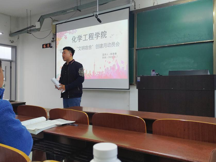 云顶国际yd888于11月9日在逸夫楼J0108,开展了"最美宿舍""文明宿舍"重点创建月工作动员会,此次会议旨在传达学校关于开展"最美、文明宿舍"重点创建月的通知精神及学院具体的实施方案。本次会议由辅导员陈泰康主持,云顶国际yd88823级新生参加了本次会议。
