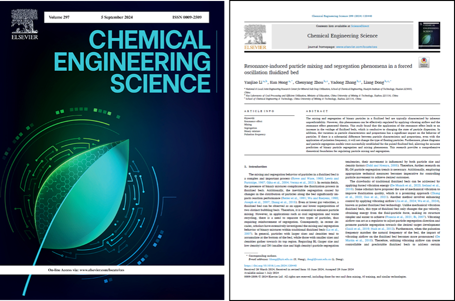 脉动流化床内颗粒的混合与分离过程属于典型的化工单元操作,对颗粒间的传热、传质和化学反应具有重要的影响。近日,公司矿盐中心(云顶国际yd888)过程工业绿色低碳技术团队与中国矿业大学合作,系统研究了利用振动气流及其产生的共振效应对矿物颗粒分离流化状态的调控作用,为脉动流化床的工程应用提供了坚实的理论基础。相关研究成果以公司为第一单位首次在化学工程学科公认的三大顶级期刊之一《Chemical Engineering Science》(化学工程科学)上在线发表(doi.org/10.1016/j.ces.2024.120448),公司青年教师李妍娇博士为论文第一作者,团队负责人洪坤教授和中国矿业大学董良教授为论文共同通讯作者。