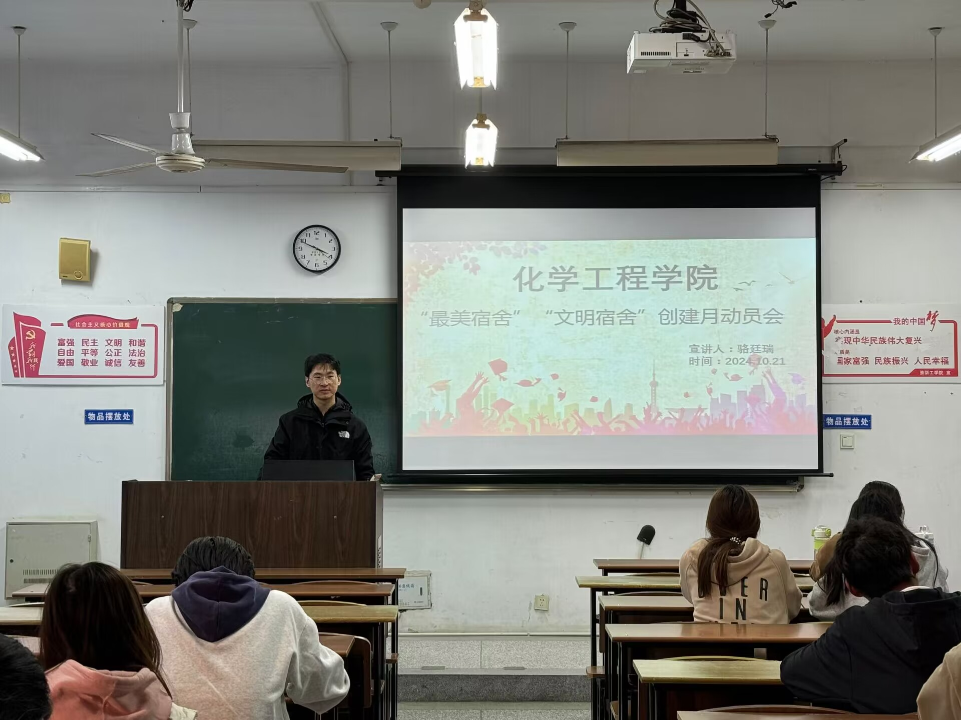 为积极推动学院文明宿舍的创建工作,进一步培养员工养成良好的生活习惯,云顶国际yd888于10月23日下午,在22202教室开展了“最美宿舍”“文明宿舍”重点创建月动员会。本次会议由辅导员骆廷瑞主持,云顶国际yd88824级新生参加了本次会议。